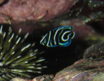 | この日ビーチで見つけたサザナミヤッコの赤ちゃん♪ 滅多に遭遇しないので興奮してしまいましたぁ! |