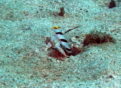 | ピンクスクワットロブスターことサクラコシオリエビさんも 巨大なスリバチカイメンにちゃっかりお住まいでした(*^_^*) 結構大き目の個体なので 見やすいですよ〜!! |