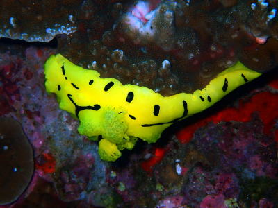| スマイルのマークに見えるところがあったりして 昔はニコチャンと呼ばれていた キイロトラフウミウシさん! |