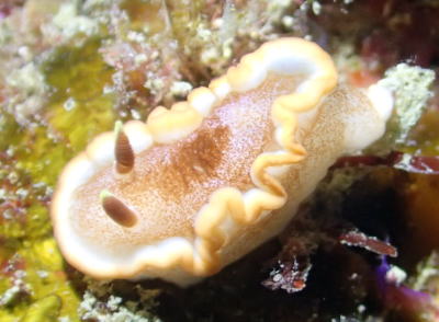 | 可愛いウミウシもあっちゃこっちゃにいてますよ! こちらはちょっと美味しそうな キャラメルウミウシさんです〜(*^_^*) |