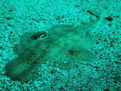 | そして、大物でちゃいましたよ\(^O^)/ 土曜にはニタリ! 日曜はマダラトビエイと遭遇!! と大物づいている冬の串本です! |