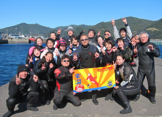 ![]() 20周年記念 柏島ツアーへ行ってきました〜!! 総勢19名でワイワイと、楽しく潜って遊んで食べて飲んで♪ 大満喫の柏島を楽しんできました! ご参加いただきました皆様、本当に有難うございました! これからもただただ「楽しい楽しいダイビング」を追い求め 皆様にお届けできるようにスタッフ一同、精一杯努めていきますので、 どうぞ宜しくお願いいたします! |