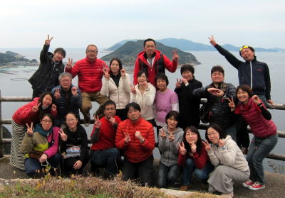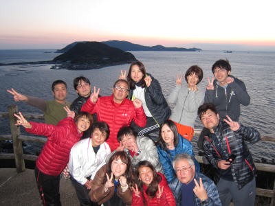 | 楽しいダイビングも終了して いよいよ帰路につきます。 柏島をバックに恒例の記念撮影です(^-^) |