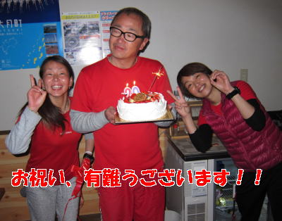 夕食の後は、シャンパンでお祝いをして プレゼントタイムに突入〜! スタッフやダイビングの仲間の皆様から 素敵なプレゼントがありましたよ! |