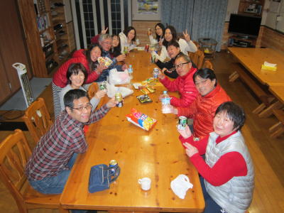 | さぁ、お待ちかねの夕食タイムです! 全員でかんぱーい!! |