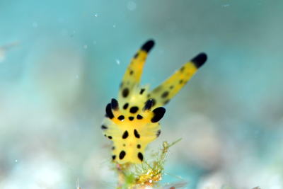 最後はウミウシシリーズ! なんともへんてこ?! 正面から見ると口ひげを生やした男爵風?! リュウキュウカスミミノウミウシ! |