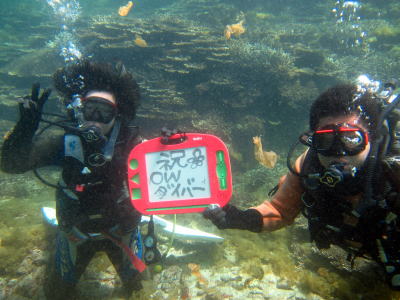 | 春の三連休~♪ 土曜日は前線通過で大荒れの海になりましたが、 日曜にはすっかり落ち着きを取り戻しました(^○^) そんな中、昨年8月の体験ダイビングをして、ダイビングにはまってしまったお二人が ようやくOWの海洋実習へ来れました~!! 体験での経験を生かして、今回はスムーズにダイビングできました(*^_^*) 初のドライスーツにも感動♪ ![]() 仲良くおかんにも大変身っ♪ ![]() ![]() これで「OKAN WATER DIVER」に無事認定です\(^O^)/ あれ、なんか違うな…(笑) 見事「OPEN WATERダイバー」認定でしたっ(≧▼≦) ![]() お二人ともおめでとうございます!! これからも楽しく仲良く潜りに行きましょう♪ 次回も宜しくお願いします(^○^) |