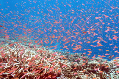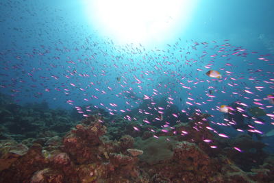 | こちらはハナゴイの乱舞(´∀`) この時期最も魚の数が多いのかもしれませんっ!! |