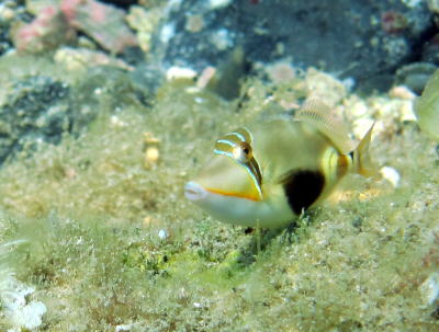 | 夏になるとやってくるモンガラ系の赤ちゃんも 登場してました〜! とても恥ずかしがり屋さんなのですぐに隠れてしまいます♪ |