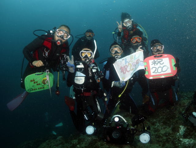 ![]() さて、日曜もいいお天気〜の中、Dさんが200本記念ダイブを迎えられました〜! |