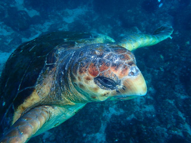| そして、今週一番の出会いは・・・巨大なアカウミガメ〜っ!!! レッドオルカだけに?「アカ」づいてます(≧▼≦) しかも、この子はとってもフレンドリー♪ というか、私達のことを仲間と思ってる?! そんな位長い時間一緒に居てくれたんです♪ こんな出会いはそうあるものではありませんが、またいつか再会したいですね(^_-)-☆ ![]() |
