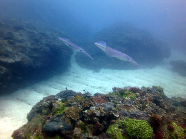 ![]() イスズミ礁では、アオリイカのペアがどうやら産卵にやってきていたようです!! この後無事にどこかに産めたのかな〜? |