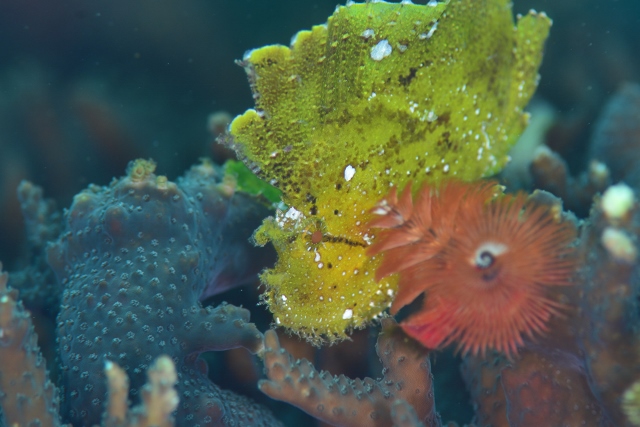 ![]() 可愛いオレンジのイロカエルアンコウの赤ちゃんにも会えました\(^O^)/ 海の色はグリーンでもマクロなダイビングには関係ないっ!! |