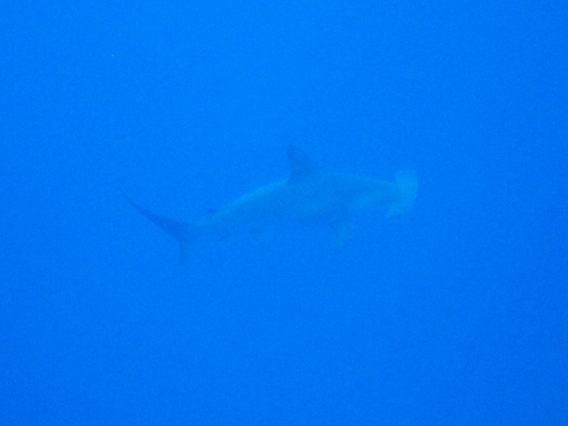 最初は単体かと思いましたが、その向こうに30匹を越えるハンマーの群れがっ♪ 一同、大興奮&夢中で追いかけました〜\(^O^)/ ハンマー探し1ダイブ目から群れが見れちゃうなんて、 なんてラッキーなんでしょうか〜っ(≧▼≦) |