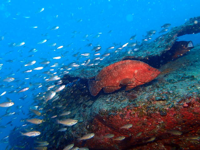 | 出会った生物 海底遺跡:メインテラス、城門、二枚岩 西崎×4:ハンマーヘッドシャークの群れ(30以上&50以上)、単体、ツムブリ、テングハギモドキ、ツマリテングハギなど ダンヌドロップ×2:ハンマーヘッドシャーク2~3匹、ウメイロモドキ群れ、グルクンの大群、イソマグロ、ツムブリの群れなど |