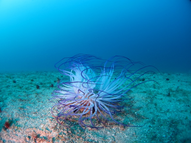 ![]() 日曜の須江では、日頃の串本では出会えない生物もいっぱいでした♪ 妖艶なムラサキハナギンチャク! |