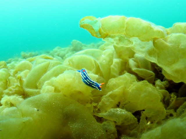 | 出会った生物 サービス前ビーチ:コケギンポ・クロヘリアメフラシ・コノハミドリガイ・アオウミウシ・シロハナガサウミウシ・キビナゴの群れ・ソラスズメダイ・キタマクラ・シマウミスズメ・ブダイ・フクロノリ&カゴメノリなど |