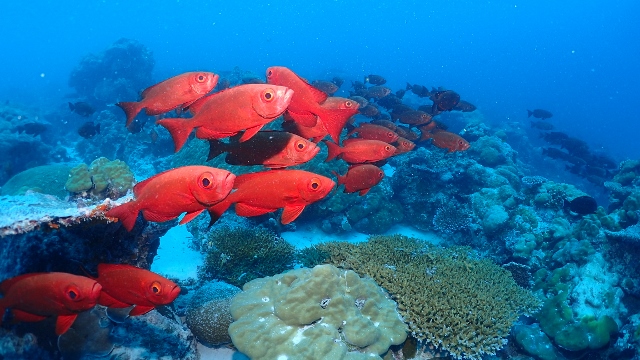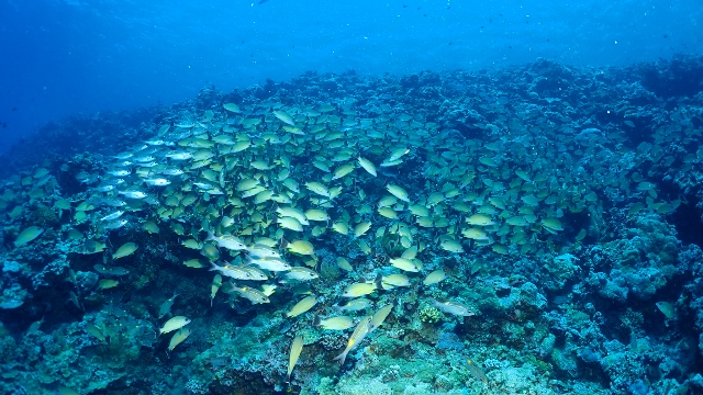 ![]() 3本目のニュードロップオフでは、ヨスジフエダイの群れに癒されました(≧▼≦) |