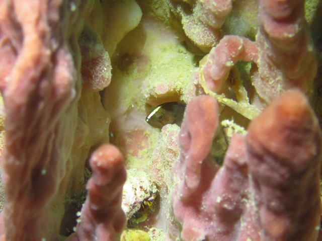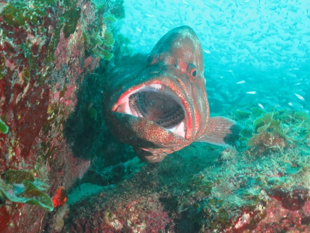 ![]() アンドの鼻のスリバチカイメンには昨年に引き続き、ヤミハタのお子様が登場! ここでしか出会ったことない気がします♪ |