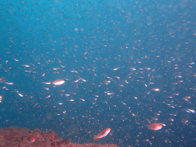 | 見られた生物 グラスワールド:キビナゴの大群&カンパチ・ミナミハコフグyg・クロホシイシモチの大群・アザハタ・ハタタテハゼ・カゴカキダイの群れ・ソラスズメダイの群れ・カンザシヤドカリ・クチナシイロウミウシ・ロボコンエビなど 住崎:ツバメウオ・ミナミハコフグyg×2・シマアジの群れ・イソコンペイトウガニ・ミナミギンポ・テングダイ・クロホシフエダイの群れ・グルクンの群れ・アザハタ&キンメモドキ&クロホシイシモチ大群・キンギョハナダイ群れなど |