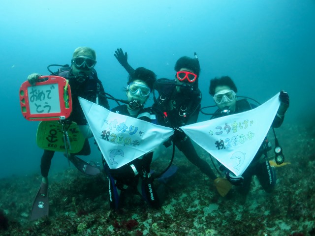 | 9月の連休第2弾、台風のうねりにやられた先週末からはすっかり海も回復して のんびり穏やかな海で潜ることができました! 土曜には、Kくん&Kちゃんの200本記念のお祝いもありました! 太陽もでてきて、大好きな串本の海でお祝いです\(^O^)/ ![]() レッドオルカで出会い、先日ご結婚されたお二人♪ ご結婚も200本記念もおめでとうございます~\(^O^)/ これからも仲良く楽しく潜ってくださいね~!! ![]() さて、ダイビングはというと、ポイントはどこも群れが多く、 メジナやイサキ、そして、各所のアザハタの根はお魚だらけになっていますよ\(^O^)/ ![]() キビナゴの群れに突っ込む回遊魚の姿もあちこちで見かけます! ![]() 23日からOPENされた期間限定ポイントのアンドの鼻も 元祖 アザハタの根が元気モリモリ♪ ![]() そして、南の海からの使者も少しずつ増えてきています! 可愛らしいホシゴンベの赤ちゃんや~ ![]() ミツボシクロスズメダイの赤ちゃんもあちこちで急増中です♪ ![]() 砂地のハゼも元気にホバーリング中~\(^O^)/ ![]() キレイなニシキウミウシに乗ったウミウシカクレエビも登場です~(*^_^*) ![]() アンドの鼻では、スベスベマンジュウガニというちょっと変わった名前の可愛いカニさんが登場! ウルウルしている瞳がなんとも言えません(*^_^*) ![]() 3日間、たっぷり潜って楽しんだ3連休になりました\(^O^)/ ご参加いただきました皆様、有難うございました~! これからがダイビングのベストシーズンですよ~♪ ![]() |