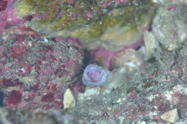 ![]() アカハタのお子様なんですが、よーく見ていると時々大きなお口を開けて吠えてました! その瞬間をばっちりGETしてくださいました〜!! |