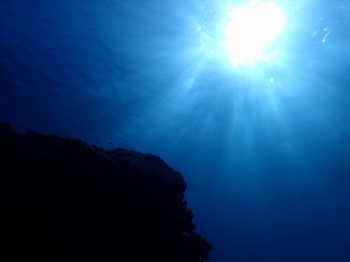 ![]() 講習中、突然目の前にボラの大群「ボラクーダ」が登場〜\(^O^)/ 一瞬だったので、証拠写真程度ですが、すんごい迫力でした! |