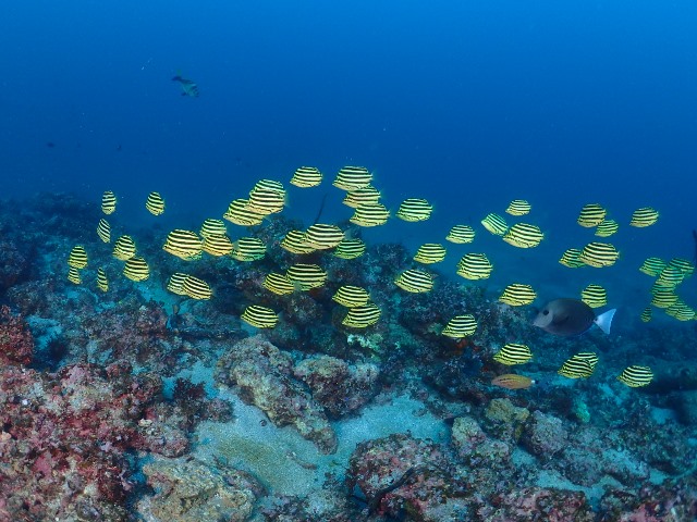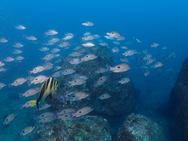 ![]() 住崎のクロホシフエダイの大群はなかなかの見ものですよ〜! |