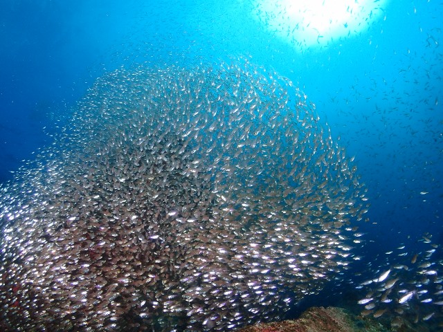![]() クロホシイシモチとキンメモドキの群れがえらいことになってますよ〜っ!!! |
