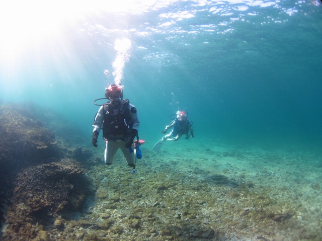 ![]() 久々のお二人、まずはビーチダイビングでリフレッシュしながら 中性浮力の練習でーす! 透明度も良くて、光がキラキラのビーチでしたね(^_-)-☆ |