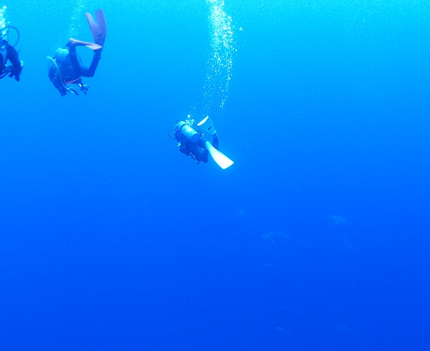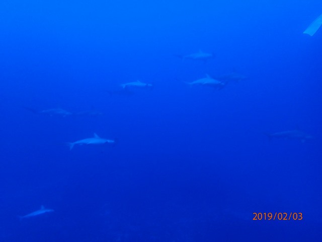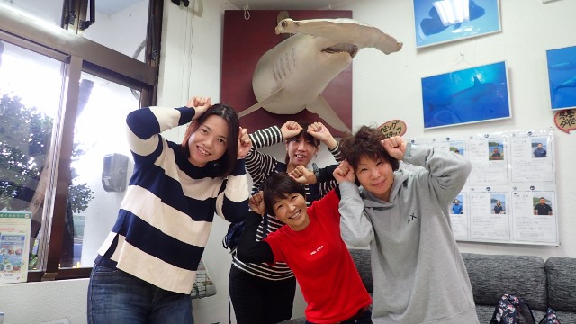 | 毎年恒例の与那国島ツアー、今年もハンマーヘッドとの出会いを求めて行ってきました~! 今回はなんと完全レディースツアー!しかも全員が与那国島初参加! ワクワク☆ドキドキいっぱいのスタートです! まずは到着後に海底遺跡へ~!やや流れはありましたが、城門から二枚岩 ![]() メインテラスから ![]() 亀岩までをしっかりみてきました!少し流れもありましたが記念撮影もしましたよ~♪ ![]() 透明度もよくて、途中バラクーダの群れも登場してくれたりもしました(^o^;) 翌日は、朝到着のゲストさんも合流して、まずは久部良バリへ!海がとにかく青い~! カメさんもいっぱいいて、目の前までやって来てくれた子もいましたよ(^-^) ![]() そして、二本目からいよいよハンマーヘッドの大捜索へ! するとエントリーして間もなく、ハンマーヘッドの群れが登場~\(^-^)/ ![]() なんと素敵なスタートなんでしょうか~♪2分間くらいは一緒に泳いでました! 一気にアドレナリン放出しましたね! さらにその後、単体のハンマーさんが近くまで来てくれて、 最後は安全停止中の私たちの様子を伺うかのように目の前までやって来てくれました! ![]() 三本目も期待して入ったのですが、この時は残念ながらノーハンマー… 翌日に期待して、皆でお祈りを捧げて休みました! 翌日は南よりの風が強まり、西崎方面が厳しいため、ダンヌドロップエリアでハンマー探し! すると、またまたエントリーしてしばらく経った頃にガイドさんが「一匹」の合図をして指さしていますが、 だんだんガイドさんが指差しながらスピードアップ! 興奮が伝わってきて、追いかけていくと群れが見えてきました~\(^-^)/ ![]() ![]() ![]() ![]() ほんの1分ちょっとだと思いますが、しばし目の前の至近距離で泳ぐことができました! 興奮と猛ダッシュで、全員が心臓がバクバクしたそうです(笑) その後、また安全停止中にものすごく近くまで単体ハンマーさんがやって来てくれました~! 水深5mでハンマーに出会えるなんて夢みたいですね(^∇^) 二本目は、単体のハンマーが少し深めの水深を横切り、 ラストダイブは、残念ながらブルーウォーターで、泣く泣く終了… それでも、ハンマー狙い五本中三本でハンマーと出会えて、 二回は10匹ちょっとでしたが、至近距離で群れも見れたり、 浅いところでハンマーにあえたり、とラッキーなダイビングでした! ![]() 次は三桁のハンマーに会いたいね~と、今回ご参加のレディースメンバーで再訪を誓いあいました そして、翌日はお天気が悪い予報のため、三本潜り終えてから、島内観光にも行ってきましたよ~! ぐるっと島をひとまわり~!立神岩に ![]() Drコトー診療所に ![]() 日本最西端を満喫♪ ![]() 一緒に群れを見た皆様と並んで夕食タイムに記念撮影~♪ 皆でお風呂に入ったり、変顔パックをしたり、とレディースツアーならではの楽しみ方で最後の夜も過ごしました! ![]() 翌朝は予報以上の嵐に~っ、なので、宿で大人しく過ごして、帰路に着きました。 帰りの飛行機も心配しましたが、無事に飛べて一安心(^-^) 石垣、那覇と経由して、帰ってきました! 楽しい与那国レディースツアーになりました(^∇^) ご参加いただきました皆様、有難うございました! ![]() 次回は三桁ハンマー目指しましょう~\(^O^)/ |
