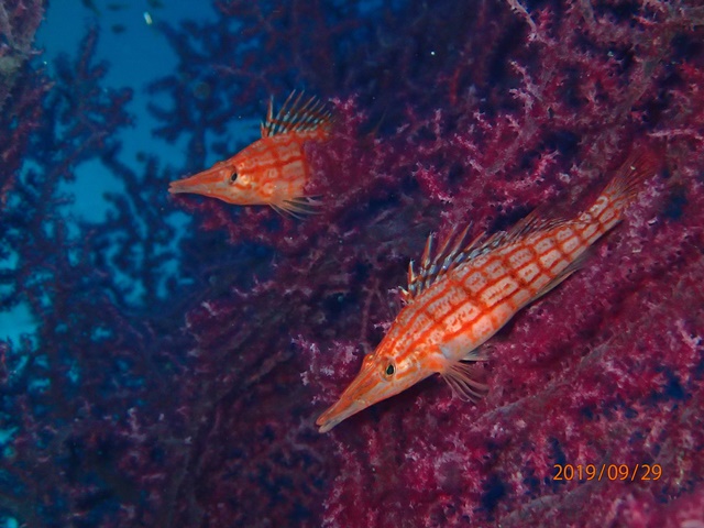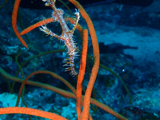 ゆ〜らゆら漂う枯葉のようなカミソリウオのペアは、 大きい方のお腹にびっしり卵が入っていましたよ〜! |