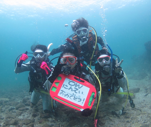 | 3連休が台風で吹っ飛んでしまったので、久々の串本です! 金曜日は、警報が出るほどの大雨で、串本へ向かう道中も激しい雨が降りましたが 海は意外にも穏やかでした! 透明度も心配しましたが、意外にも見えていて、 台風前にはいなかった生物や、群れも増えていたり、と ベストシーズンならではの光景が近づいている感じです! アンドの鼻では、ソメワケヤッコのお子様が登場~♪ 台風さんが連れてきてくれたのかな~? ![]() あちこちにあるアザハタの根も、今はお魚増殖中です! どうかこのままオオモンハタの集団に見つかりませんように…。 ![]() ビーチでは、OW講習も開催! 今回は、お母さんと娘さんお二人でチャレンジでした! 土曜は波あって、少しユラユラの中でしたが 皆さん、頑張られましたね~(#^.^#) ![]() これからもまたご家族で潜りにいらしてくださいね~! 次はアドバンスに挑戦かな~っ(^_-)-☆ ![]() ご参加いただきました皆様、有難うございました! |