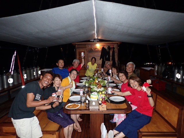 | RED ORCA初ツアー 「奇跡の海」とも呼ばれているインドネシア東部 ラジャアンパットへ行ってきました~! 往路は、関空でのドローン騒ぎでなんと3時間も出発が遅れ… デンパサール空港では、ハラハラドキドキの乗り継ぎ1.5時間しかないっ! ジャカルタ空港も、空港が巨大なので、移動しているだけであっという間に搭乗時刻となり、 関空以外では、とにかく空港のイスには5分座ったかどうか、というくらいの慌ただしい移動になりました(>_<) それでも、最終的には、翌朝、無事に予定通りに最寄りのソロン空港に到着! 早速、港へ移動して、このツアーで滞在するクルーズ船「HATIKU号」に乗船です! ![]() ソロンの港からラジャアンパットエリアまでが、約5時間の船旅ということで、 乗船後は、簡単な案内、器材の準備、お部屋に入って、朝食! 長旅を癒してくれるお粥で迎えてくれます(^-^) ![]() その後は、一旦お部屋で休憩。ランチを挟んで、再び休憩、とのんびり過ごします。 そして、15時ごろからローカルブリーフィングで、 ラジャアンパットの海についてなど、様々な情報を聞かせていただきました! ![]() 夕方になってしまいましたが、早速チェックダイブを兼ねて1ダイブです! ワイゲオ島のポイントで潜りました! 固有種のお魚や、見渡す限りのカラフルなサンゴ&ソフトコーラルの景色に、 早速、ラジャアンパットのすばらしさを垣間見た1ダイブでした! ![]() 2本目は、夕食後に希望者でナイトダイビングです! 長旅の疲れもあり、精鋭の3名のゲストといざ夜の海へ!! 小さな甲殻類の数々に、なにか分からない小さなお魚の赤ちゃんなど、 夜ならではの生物を楽しみましたよ。 ![]() 翌日は、一気にバタンタ島まで移動しました。 ここのところ、マンタポイントではマンタがでていないそうで、現地の情報で、マンタを求めての大移動です! すると…エントリーしてすぐに、なんとブラックマンタが出てくれました~\(^-^)/ 普通のマンタは色々な海で出会ってきましたが、ブラックマンタはほとんどの方が初対面(^o^) しかも、1ダイブ中に、なんども私たちの周りへやってきては、泳いでいく姿をみせてくれました! ![]() マンタとも無事に会えたので、再び島を移動して、午後から2本目です! ここはまず桟橋マジック!!もうずーっとここにいられそうなくらいに桟橋周辺のお魚が群れ群れなんです! ゲストの皆さんも、すっかり桟橋フリークになられていましたよ(^_-)-☆ ![]() そして、このポイントの目玉は、少し深場にあるイエローリボンスイートリップスなどが群れている場所♪ 到着すると、ツマグロや、ナポレオンなどの大物も一緒に普通にそこにいる感じ! なんなんだ、ここは~っ!!! そして、この子たちの身を寄せ合ってひしめき合ってる感じ、大好きです(^-^) ![]() そこから再び桟橋へ戻る途中には、超巨大なタイマイに遭遇したり、バラクーダの群れ! そして、ユメウメイロの大群が織りなす本当に夢のような光景etc ![]() もう全ダイブここでもいいわ!くらい楽しいポイントでした! 次は、少しだけ移動して、2月にSTAFFだけで来た際にジュゴンに遭遇したポイントへ! ここも、とにかく魚が多い~\(^-^)/そして、サンゴもいっぱい~♪ 透明度もいいので、のんびりまったりと楽しむことができました! ![]() この日も夕食後に希望者はナイトへ! 70代の3名はお休みで、それ以外の5名のゲストとナイトです! すると…なんとウォーキングシャークがでてしまいました~\(^-^)/ 最近はここではでていなかったそうなのですが、なんという強運♪ しかも、他のダイバーもいなかったので、のんびり観察&撮影もできちゃいましたね! なんとも可愛らしかった~♪ ![]() さて、ダイビング3日目に突入です! この日はサンゴのきれいな所へ行きます!ということで、メリッサガーデンというポイントへ! ここも2月に潜った際に、STAFF全員が感動したとにかくサンゴのすんごいところ!! ただ…満月ということで、結構流れておりまして、ハプニングもあり、 メンズチームとレディースチームは別行動となりました。 レディースチームには、なんとエントリー直後からコバンザメちゃんが近づいてきて、 そっと私たちチームの一員に!! 最終的には、全員に一度はコバンザメしてくれたんじゃないでしょうか(笑) サンゴもすごかったのですが、この子もめっちゃ可愛かったんです(^o^) ![]() そして、もちろん一面に広がるサンゴ・サンゴ・サンゴ~!!! その上に群れる魚・魚・魚~っ\(^-^)/ ほんとうにヤバイポイントでしたね♪ 流れに逆らって、頑張った甲斐がありました!! ![]() 次も、同じくサンゴのきれいなポイントへ! ここも多種多様なサンゴに、お魚の数がめちゃくちゃ多いところでした! ![]() 2ダイブ後、なんとシャワー待ちでデッキに残っていると、イルカの群れがHATIKU号についてきました! しばらく一緒に泳いでくれたのですが、先にシャワーに入られた方は見れず…少し残念でしたが、 こーんな感じでジャンプを繰り返してくれましたよ! ![]() さらに希望者で昼食