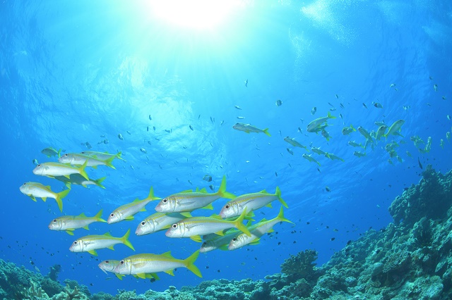 ![]() 沖縄らしいノコギリダイの群れや |