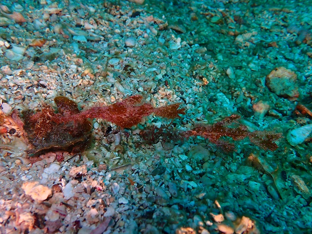 ![]() イスズミ礁の砂地では、カミソリウオのペアが放浪中! そのうち抱卵するのかな? |