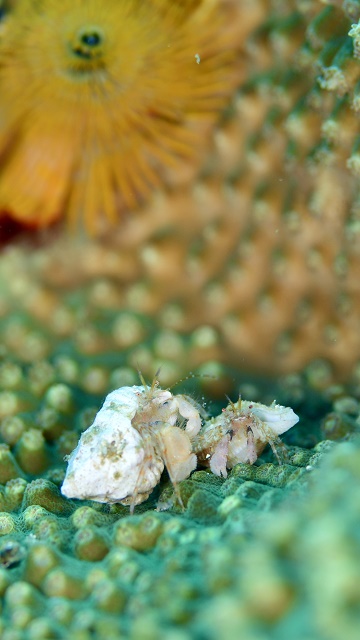 ![]() バックの黄色いイバラカンザシが花火っぽくて 仲良しな感じのヤドカリ カップルもいい感じです(^o^) |