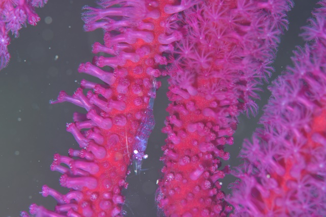 ![]() こっそり住んでるつもりだけど、見つかっちゃうヒトデヤドリエビさんです! |