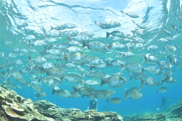 ![]() イスズミの大群がきました〜!お家に帰るところかな? |