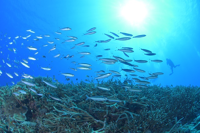 ![]() 枝サンゴにグルクンがドバーッと来ました! |