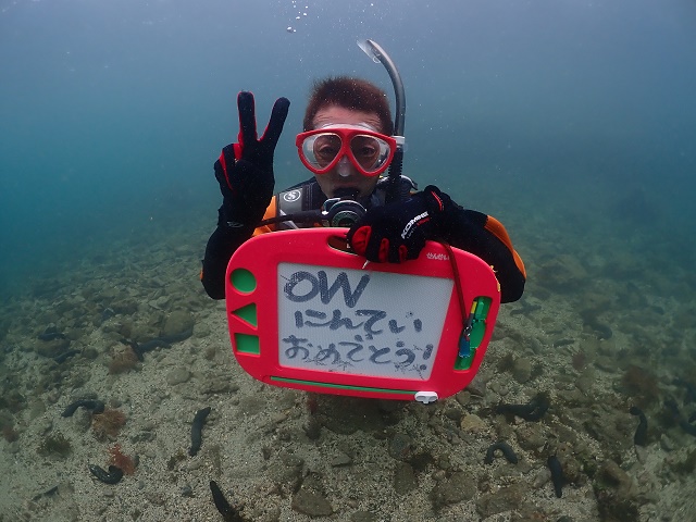 | 金曜から土曜は台風のような荒れ模様… 予定を1日ずらして、海洋実習へ行ってきました! 少し海も落ち着いて、透明度も意外と見えてましたね(^-^) そんな中、初めての海でのダイビングです! 最初は、レギュレターでの口呼吸も戸惑いますよね。 練習をしていると、イシダイの子供たちが、何?なに~?と集まって来ました! ![]() ずーっとつきまとってきて、とっても可愛いんです! そんなイシダイに見守られながら、Mさん、無事にOWダイバーに認定です! ![]() 次は、アドバンス講習で、さらにスキルを磨いて、水中世界に慣れていきましょうね~!! ダイバー認定、おめでとうございます!! ![]() |