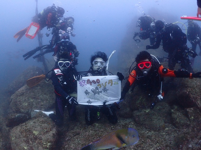 | 7月後半の四連休は、もちろんホーム 串本へ! 台風6号の影響で、うねりは残っていましたが、 連日、新たな出会いもあり、マクロもワイドも賑わう水中でした\(^-^)/ そして、そんな水中でFさんは400本記念を迎えられました~! Fさん、おめでとうございます! イラさんも、急遽お祝いに駆けつけてくれたようです(^_-)-☆ ![]() 連休中には、きれいなフチドリハナダイや ![]() ガーデンイールなんかも見つかりましたよ~\(^-^)/ ![]() 水温は、まだ少し不安定ですが、お魚達はすっかり繁殖シーズンを迎えているし ![]() いろーんなちびっこ達も登場してます(#^.^#) ![]() これからさらに水温もあがるはずなので、どんどんアイドル増えていきそうですねo(^o^)o 連休中、お越しいただきました皆様、有難うございました~!! ![]() |