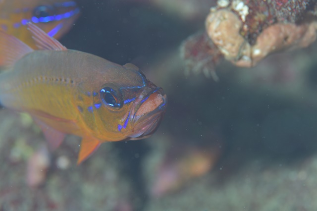 | 見られた生物 サービス前ビーチ:ミナミハコフグyg・クロホシイシモチ大群&口内保育・ソラスズメダイ群れ&卵・クマノミ&卵・チョウチョウウオ・コロダイ・シマアジ・ホウライヒメジ・コケギンポ・カゴカキダイ・テーブルサンゴの群生・ウツボ・モヨウモンガラドオシ・ハナミノカサゴ・オトヒメエビなど 住崎:キビナゴygの大群・カンパチyg・アオヤガラ群れ・グルクン群れ・ホウライヒメジ群れ・コロダイ群れ・イラ・オイランヨウジ・イタチウオ・ナミマツカサ・クエ・ニシキウミウシ・イガグリウミウシ・クチナシイロウミウシなど |