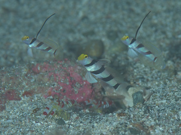 ![]() 最初はネジリンボウのお家だったのが、 そこへ1匹、また1匹とヒレネジのちびも集まってエビさんも2匹でてきて大家族に! 穴の中に入った時はいったい中でどうなってるのか気になっちゃいますね(^_-)-☆! |