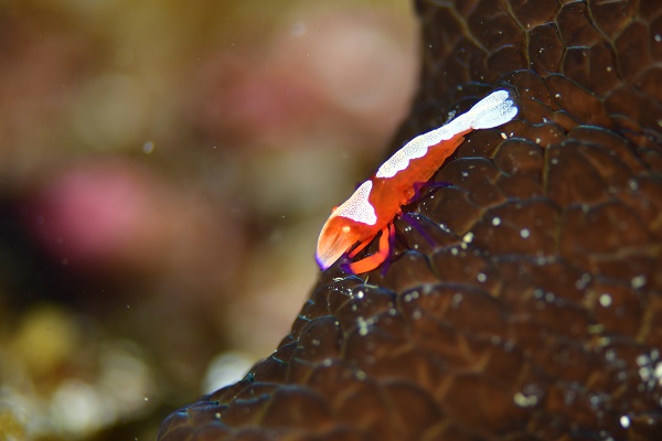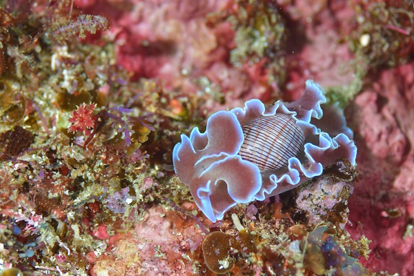 ![]() こちらはウミウシではなく貝にくっついていたウミウシカクレエビさん♪ 乗り心地よかったのかな? |
