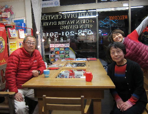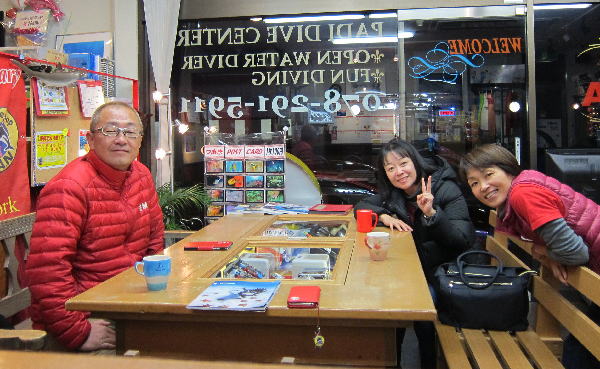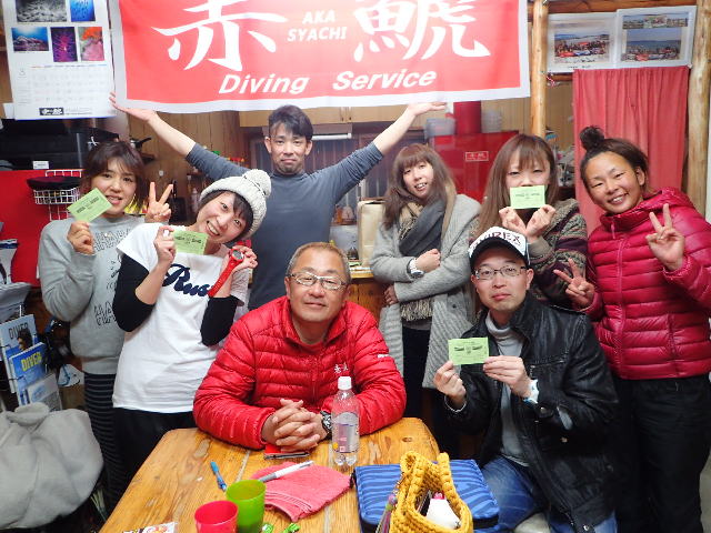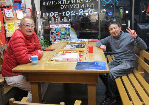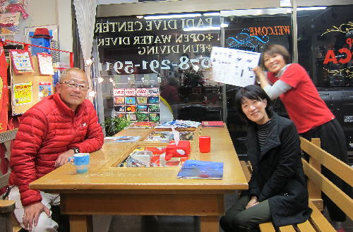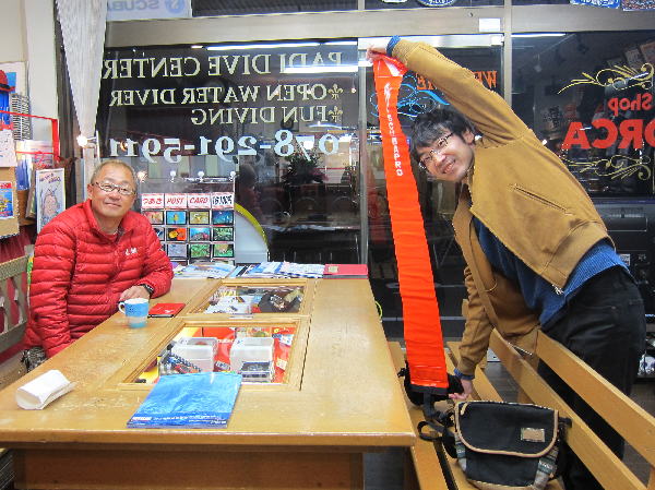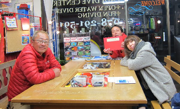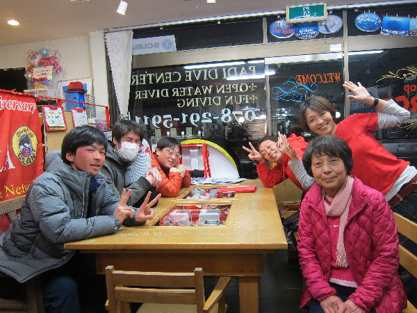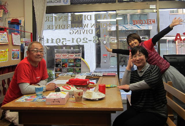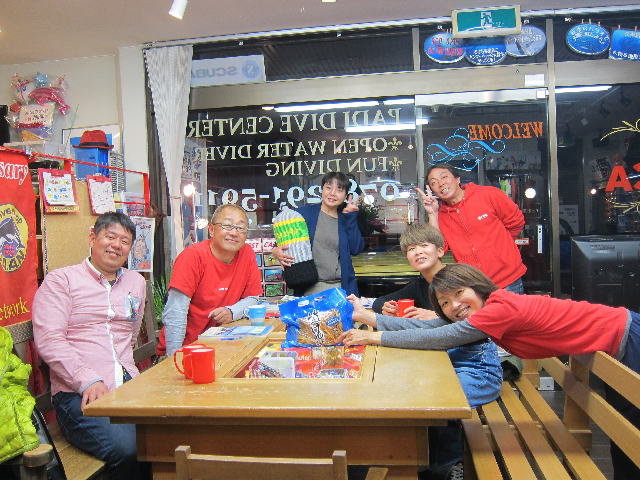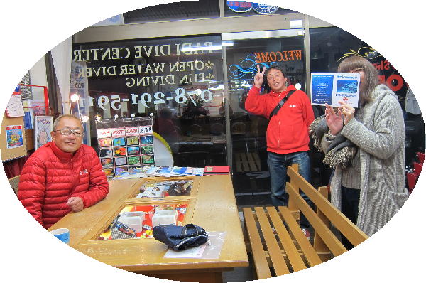 | 2017年1月20日(金) 沖縄からご来訪です! 今日は、お久しぶりに西表島のタケさんがご来訪されました! 南国からお越しなので、この寒さが身に染みるそうです(>_<) 冬の間も体を鍛えて頑張っておられるそうですよ~♪ 冬はどうしても引きこもりがちになってしまいますが、 見習わなくちゃな~(≧▼≦) ![]() 夜には、ツアーにご参加の方がご来店されて、串本へと出発~! ここのところ荒れることが多い串本ですが、土日はなんとか大丈夫そうかな(´∀`) 楽しんできてくださいね~!! ![]() そうそう、第25回串本海中フォトコンテストの結果が発表になりました~! なんと当店のゲスト Sさんが見事 入賞されております! ぜひご覧になってみてください(´∀`) コチラをクリックしてくださいね~!! では、週末も通常通り営業しておりますので、 皆様のご来店をお待ちしておりまーす!! お知らせです! 1月19日~2月28日まで、なんと須磨海浜水族園にて、 串本海中フォトコンテスト写真展が開催されます~\(^O^)/ ぜひぜひ皆様水族園へ遊びがてら、写真店も覗きにいってみてくださいね~! 詳しくはコチラへ! ここからは年末年始のイベントのご報告です! 楽しい楽しいクリパに忘年会に水中カウントダウン♪ 素敵な年末年始から、新たな2017年スタートです\(^O^)/ 本年もどうぞ宜しくお願いいたします! ![]() |