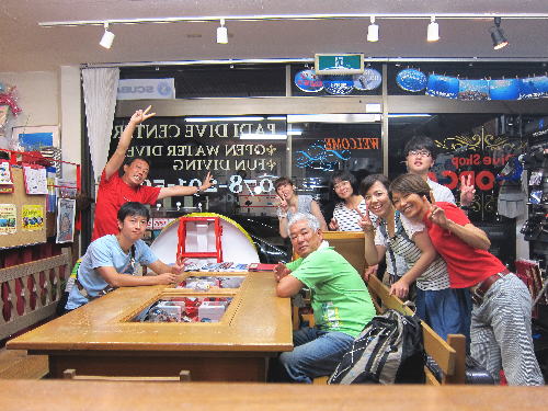 | 2017年9月17日(日) Party♪Party♪Party~♪ 今日はほぼ一日雨も降らず お店にいると風も感じられず 「ほんまに台風来てるんか~???」という一日でした(>_<) とりあえずダイビングはできないので、お店でパーティー開催です(*^_^*) まずは開始時刻に集まってくださった方と♪ ![]() 今日は、美味しいRED ORCAおでんに~♪ ![]() Rちゃんのお誕生日のお祝いメニューに~♪ ![]() Kっちゃんの手作り美味しいハンバーグetc ![]() お酒担当のSさんも来られて ![]() Kさんも変わり種のビールなどを色々買ってきてくださり~ ![]() どんどん賑やかになっていきます~\(^O^)/ ![]() こちらは行列のできる豆大福屋さんの豆大福~(^○^) 朝から買いに行って来て下さったそうで、有難うございます! ![]() ![]() 台風の予報にも関わらずお越しくださった皆様です! お腹いっぱいになりましたね~ ![]() そして、この日はRちゃんのお誕生日ということで、 お誕生日のお祝いです~\(^O^)/ 本当はお誕生日を海で迎えるはずでしたが、 パーティーでちょっとは気分が晴れたかな~♪ ダイビングはまたリベンジしましょうね! ![]() 楽しい1日になりました! 明日も通常通り営業しておりますので、台風一過の晴天! お出かけの際にはぜひ遊びにお立ち寄りくださいね~!! |