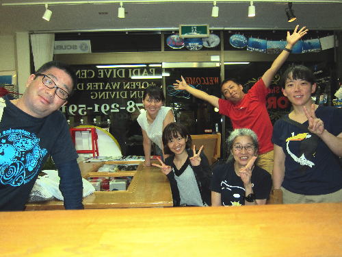| 2017年8月10日(木) さあ、いよいよお盆ですね♪ 今日ぐらいからお休みのところもあるのでしょうか? 待ちに待ったお盆休みですね♪ 帰省したり、遊びに行ったり、潜ったりと色々ご予定を立てられているのかと思います。 もちろん我々はダイビング三昧です! 台風もできていないし、お天気もよさそうだし、いいお盆になりそう(^-^) 明日からは串本の海も大賑わいですが、毎年恒例、座間味ツアーへ出発です。 今年はどこのポイントも潜るのか!? 何に出会うのか!? どんな伝説が生まれるのか!? ワクワクがいっぱいです。 そんなワクワクいっぱいの座間味ツアーを明日に控えたKさんがご来店♪ 初沖縄、初座間味! 思いっきり楽しんで来てください!!! お盆は帰省されるRさん(´∀`) 帰省に向けて明日はお買い物だそうです♪ 海は月末の柏島~ そして、OW講習のIさんは学科バッチリ合格です! セッティングの練習もOK~ 後は海で楽しく講習しましょうね♪ 皆様、お盆休み楽しんでくださいね!!! |