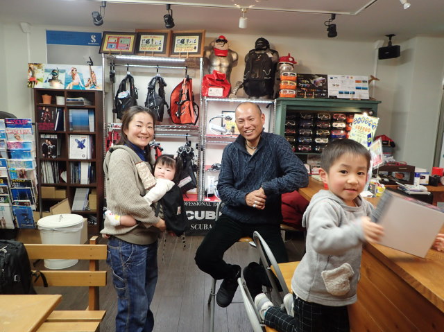 | 2018年1月10日(水) 寒くなりましたが負けませんよ~ 今年最初の三連休を潜り倒し、通常の営業です! え、寒気が来て寒くなった? いえいえ、だからこそ、当店で楽しいおしゃべりをして温まってください!!! 皆様が来られるのをお店でお待ちしてます! 寒さなんかに負けませんよ~! そんな中、可愛いお客様です。 皆様ご存知のA様ご夫妻と息子のK君♪ めっちゃ大きくなって、可愛いんですけど、ちょうど人見知り時期に突入したそうで、 まったく抱っこできず。 なんなら、近寄ることさえできなかった。。。 僕の顔見たら泣くんですもん(T_T) 優しい顔になるように、顔の筋肉をほぐしておきますね! 次来た時は遊んでくれるかなあ。。。。 そして、明けましておめでとうございますとYっさん! 今年もよろしくお願いいたします♪ この冬の計画はばっちりですね! 今年はダイビング一筋?でどんどん潜りに行きましょうね\(^O^)/