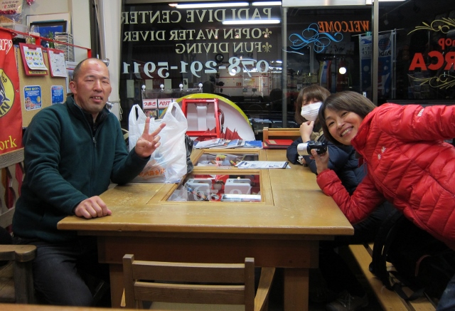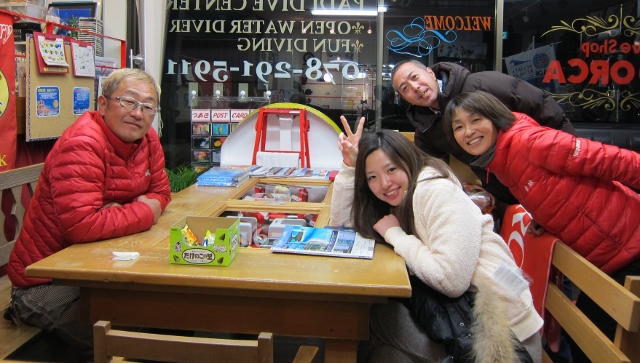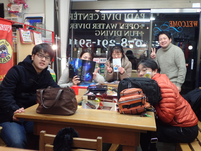 | 2018年1月15日(月) 寒さが緩んだ1日でした♪ 今日は少し寒さが緩くなった感じです。 それだけで過ごしやすいですねえ(´∀`) このまま暖かくならないかなあ。。。 とはいえ、油断は禁物です! 皆様、風邪などひかないようにご注意くださいね♪ そういえば以前は今日が成人の日でした。 今は毎年日が違いますけど、なんとなく、成人の日といえば1月15日な気がします。 こういうところでジェネレーションギャップって生まれるのかなあ(笑) さて、夕方に与那国ツアーにご参加のTミーがご来店! 準備も万端♪ あとは寒波が来ないことを祈るのみ!!! すんごい数のハンマーと遭遇している姿を妄想中だそうです♪ その妄想が叶いますように(≧▼≦) よろしくお願いしますよ~!!! なーんて、お話ししてたら、お久しぶりのI様がお越しになりました。 Tミーと久々の再会~ 世代を超えて、平日の串本を楽しまれたお二人! ダイビングって色んな世代の人と楽しめるのがステキなところだと思います(^-^) 2018年はタイミングが合えば、是非ツアーに行きましょうね♪ |